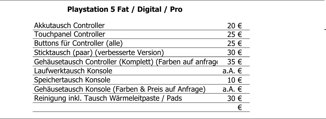 Du brauchst eine andere Reparatur? Nicht gelistete Reparaturen einfach via Formular anfragen.